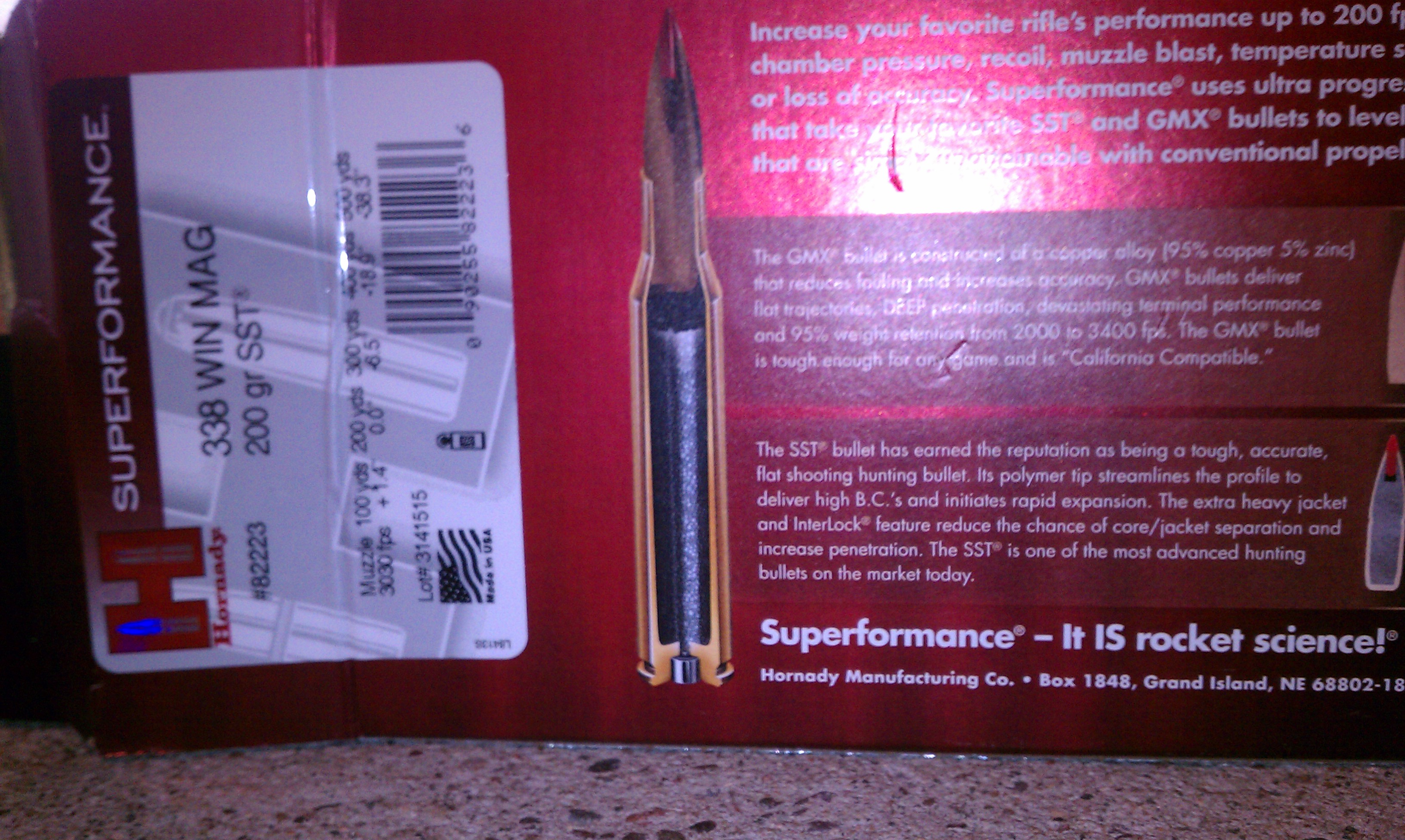 Well, the lesson for the day is to wear your safety glasses with EVERY shot! Yowtch!! That does look about as ugly as it can get. I think JJ is right on point, and if you double click the pictures they come up full size and considerably magnified. No trace of a belt anywhere on the case, and the case mouth definitely still has a crimp in it. Yes, the box says 338 Win Mag, but if you really magnify the case head you can see the Hornady name in the lower right quadrant, and "maybe" the numbers 338 up towards 12 o'clock, but that's a pretty sketchy call. The lower left quadrant is still readable, and the last 4 letters appear to be "SPRP". That would mean it's the Hornady 200 grain SP-RP bullet, which conflicts with the SST labeling on the box. The problem is that there doesn't appear to be enough space left on the rim for 338 Win Mag. The other thing is the case is all bulged to hell above the rim, so whatever went in there was smaller than it should have been. The only guess I can make is a 338-06, and that would be about the right number of characters for the space on the case head..... If it had been that, there would have been a pretty substantial headspace problem because the 338-06 is shorter, so the firing pin could have kicked it forward and thus jammed the case neck in the lands. The neck of the 338-06 case is noticeably longer than the 338 Win Mag, so it would have stuck in the lands.