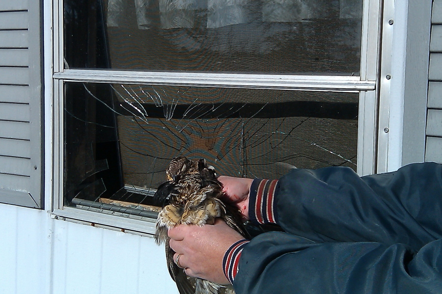 We arrived at the hunting shack on Friday and found a broken window. Initially thought break in or stray bullet??? Upon further inspection found some feathers around the broken glass. We entered the house and found the live grouse sitting on a chair in the living room. :o