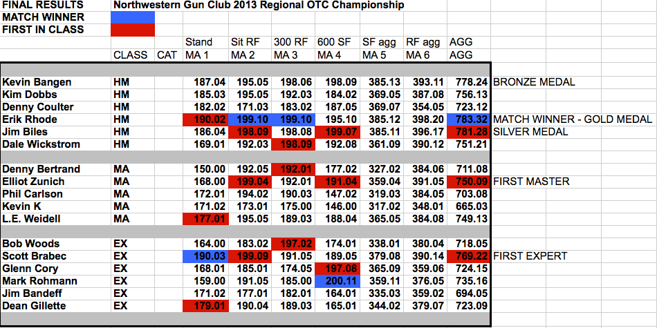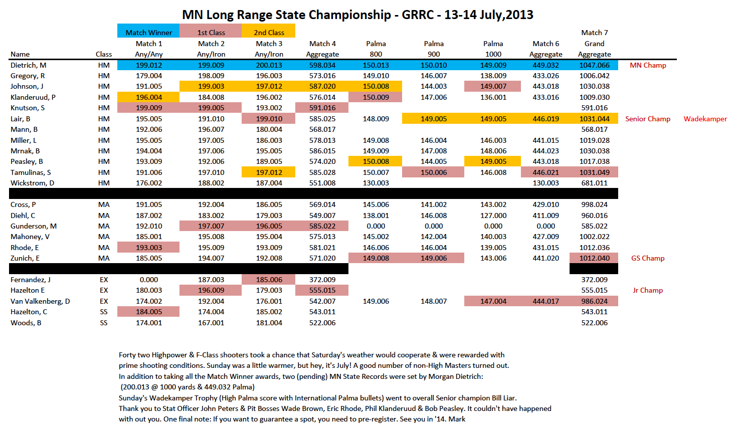 Erud wrote:One more match down. 2013 HIghpower Regional Championship match was today at Northwestern Gun Club in Duluth. It was warm and humid with rain in the afternoon, but no wind do speak of. I didn't touch the windage knob on my sight until the 500 yard match where I had 1/2 minute of left on. Shot better than last weekend.
