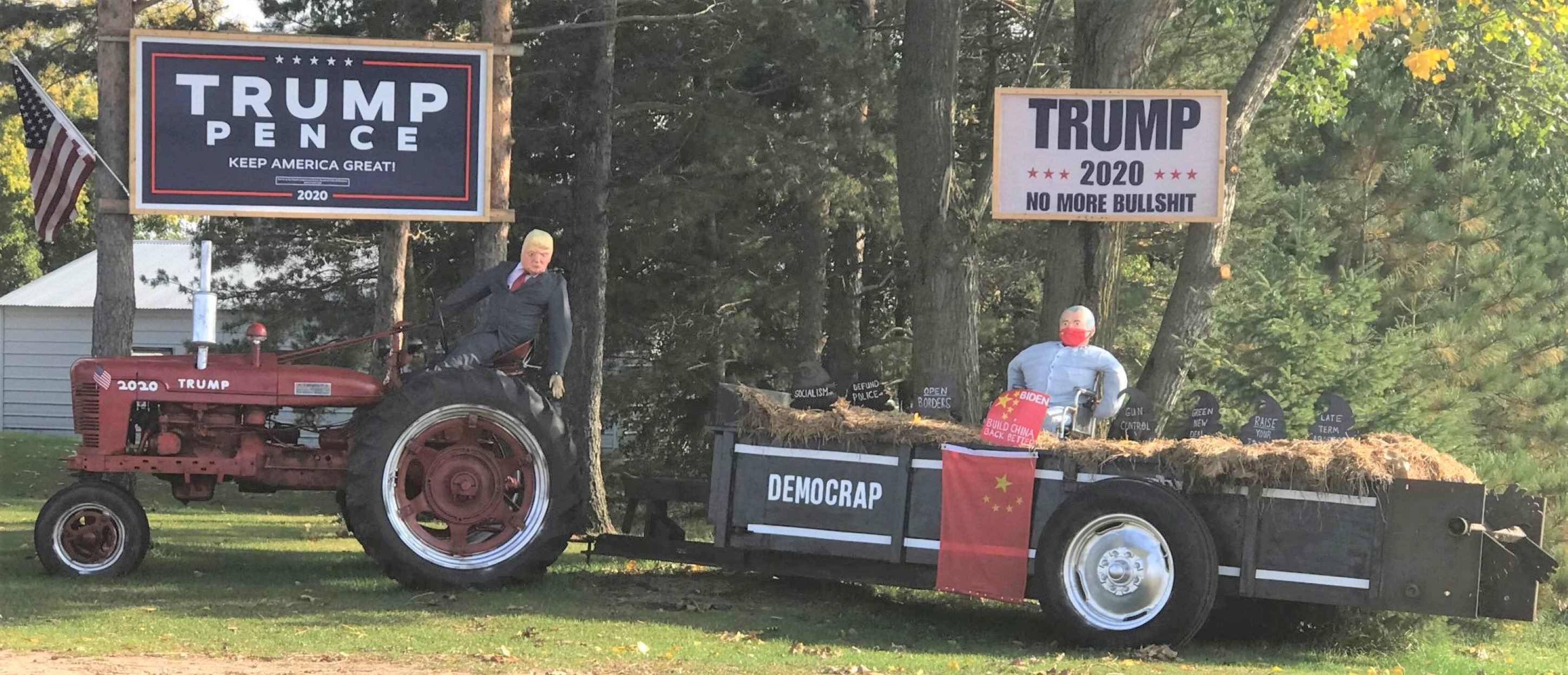 Drove by this masterpiece on Friday. Biden is in the manure spreader, along with socialism, defund the police, open borders, gun control, green new deal, raise your taxes, and late term abortions.
