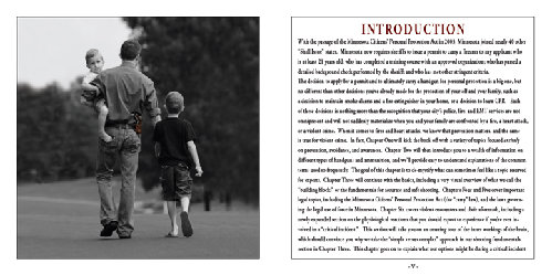 Chapter Four was revised to include minor updates to Minnesota law, and reciprocity/recognition agreements; and Chapter Five was revised to include a number of scenarios, and more information about how prosecutors will evaluate a claim of self-defense.