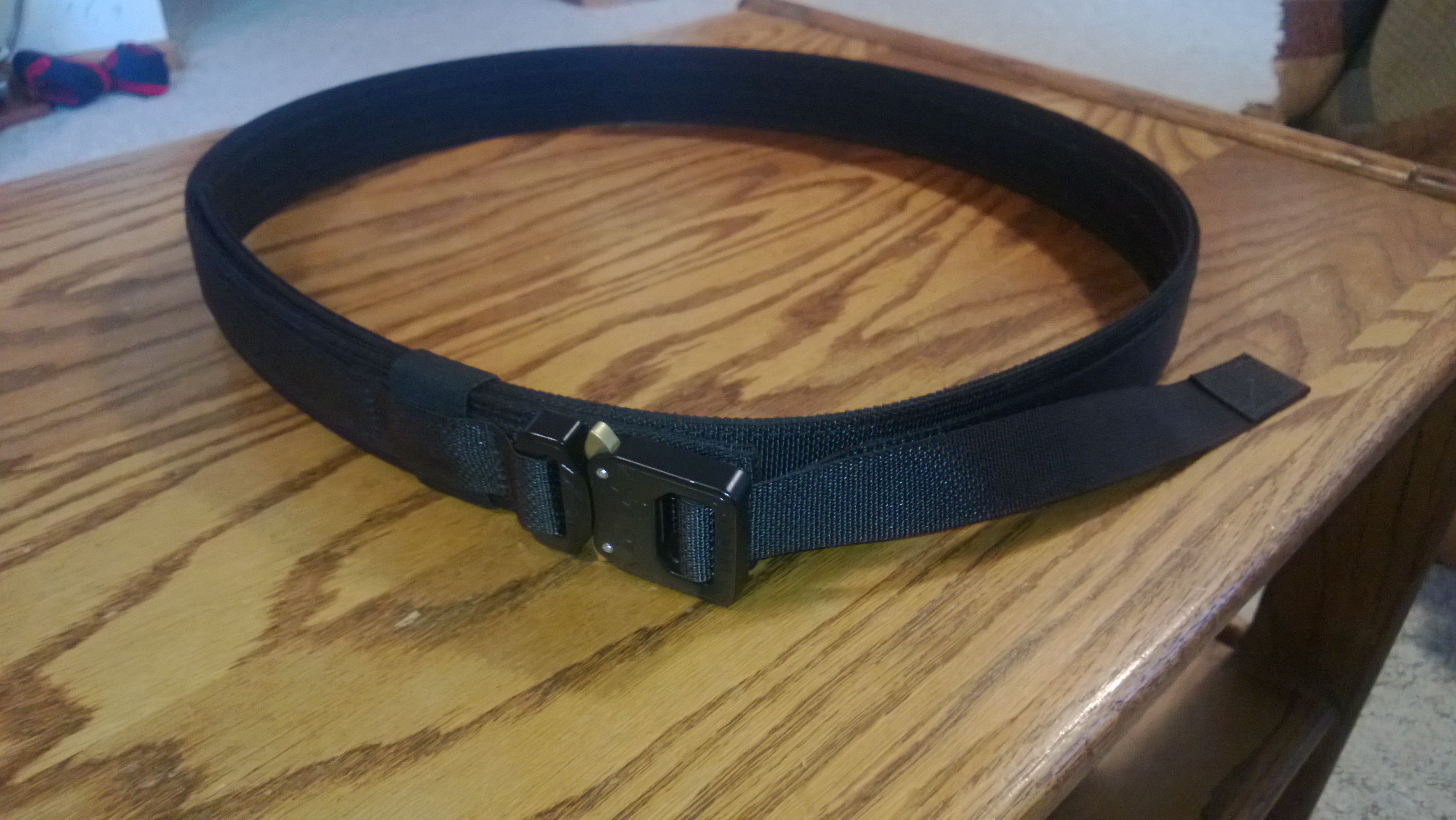 Like new, only worn a handful of times.  After purchasing, realized it was sized too big, so I purchased another one.  It is a fantastic belt!  Carrying a CZ 75B OWB, there is absolutely no sag.