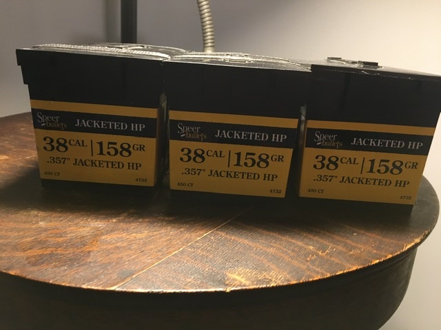 I have 3 450ct boxes of Speer 158gr JHP’s. One opened for inspection, but all there.