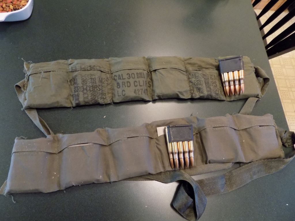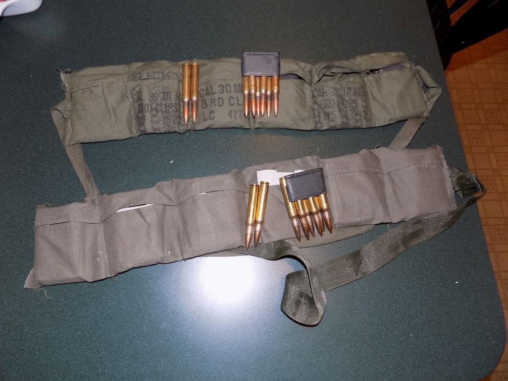 One bandoleer of Lake City LC 69 M2 ball on Garand Enbloc clips, non-corrosive. 48 rounds