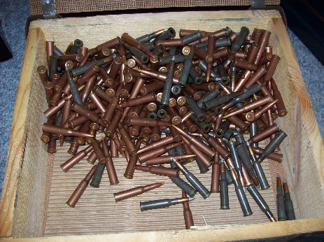 1. Loose Ammo in crate 250 rounds copper washed full metal jacket + 118 rounds lacquered case heavy ball @ $