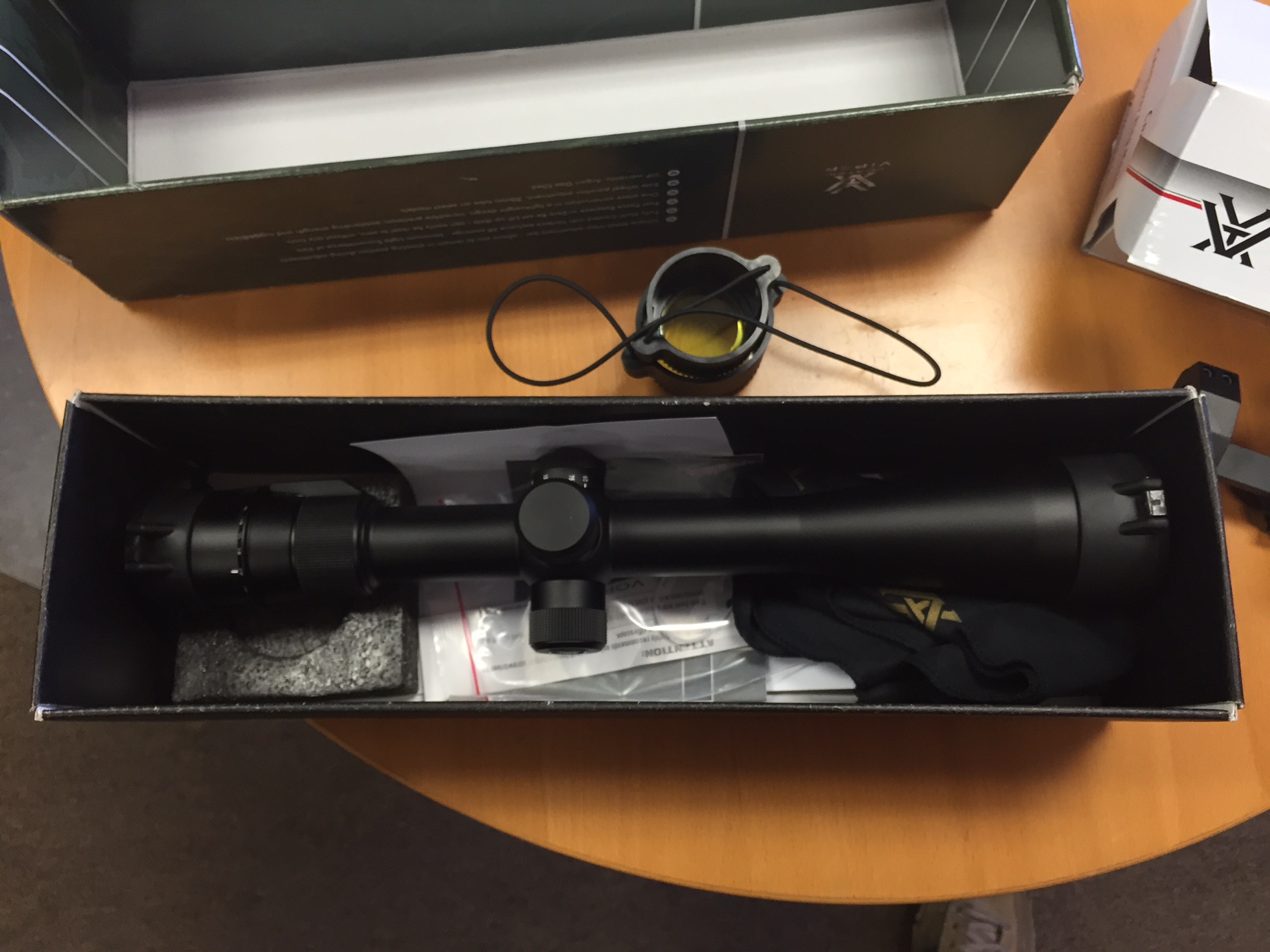 [Never used, just taken out of box to put scope caps on and pictures. I'm do longer doing another rifle build, so I'm parting with it. It retails $460-480 new. I also have a 30mm mount vortex NIB for sale if your interested ($120 new yours for $80) perfect mount for ARs or most rifles with right base. Scope flip up caps included deal.