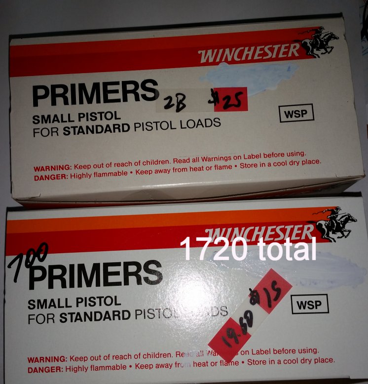 Trying to standardize my loading primers so these are for sale. Price on the right is if you buy them here, price on the left is current retail without shipping. Offers?? Can deliver to 1st Wed lunch, June 15 Hutchinson steel shoot or Tuesdays to Chaska Shakopee areas.