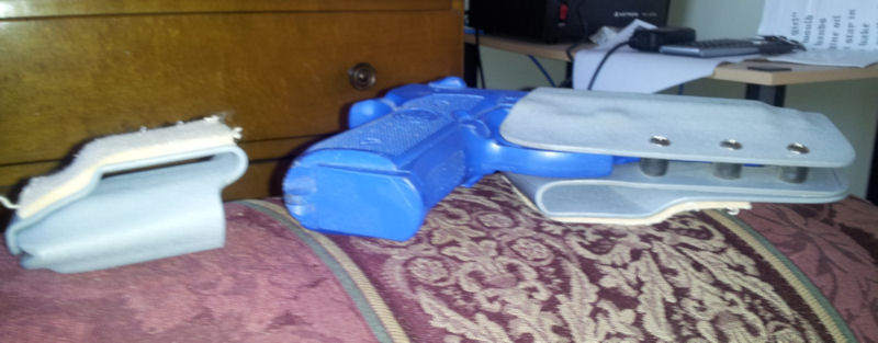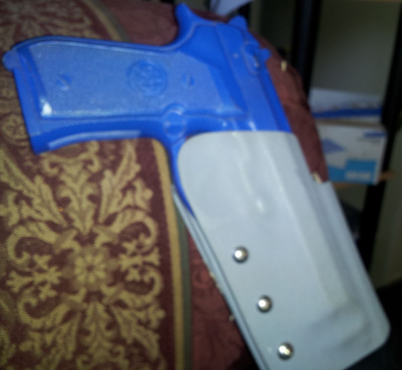 RM Holsters are solid 1-piece kydex. You can specify how big of a belt loop you'd like as well. This is a 20 degree cant and it is not hard to conceal a Beretta 92FS if you want with it. I put the moleskin on it because plastic on skin sucks. He also has the ability to make it for your Sig 2022. He's really expanded his offerings for this holster. No clue what all colors he offers it in anymore. Last time I asked, he could get quite the rainbow if you wanted to buy a full sheet of kydex.