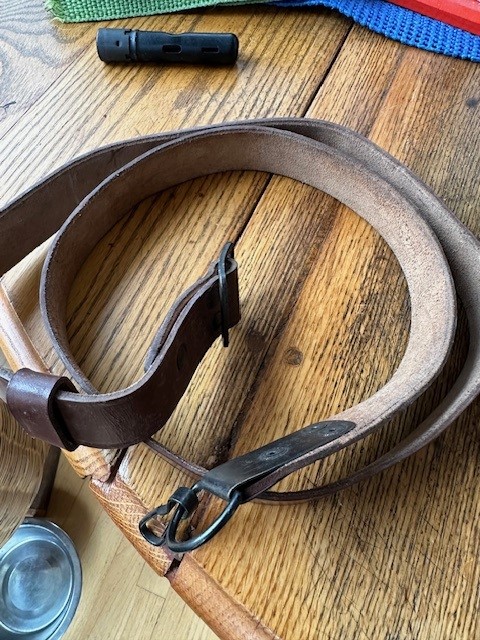 I bought a 'grab bag' of gun stuff at an auction (got ripped off, but that's beside the point). In the box of stuff were these three things I can't identify- the oil can is an obvious, but am not sure to what and from where. No markings on it. The black tube of cleaning stuff I think is AK/SKS, right? But the sling? No clue....there's a snap hook closure on one end on a D ring, then a frog and just a slide buckle on the other end. Please tell me these are all rare and expensive, because I have no need for any of it! Trade me a muskie lure or two and it's a deal....