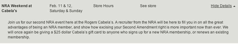 Cabela's annual NRA weekend(s) coming up...