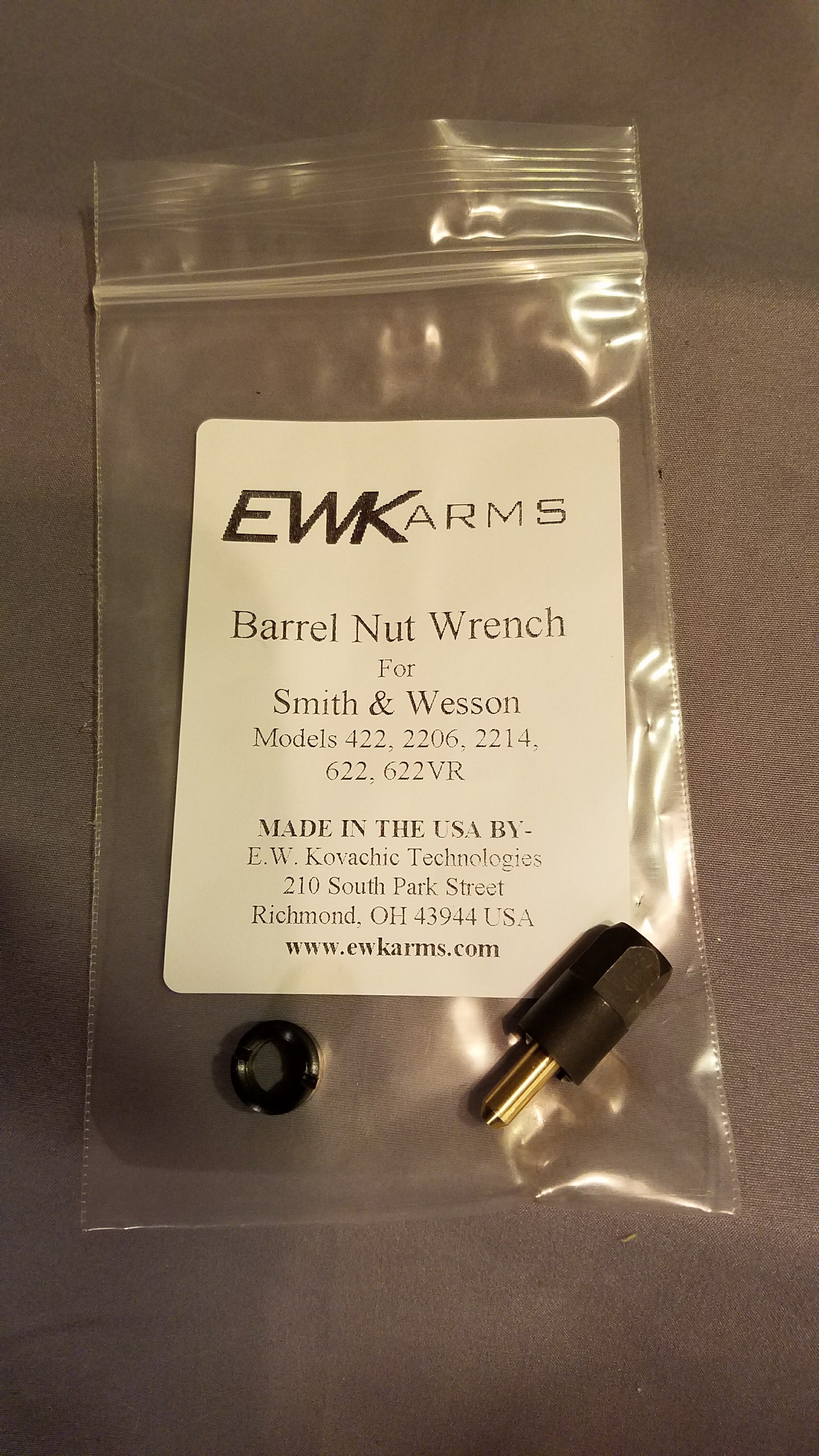 I have this tool to loan out. It is a specialized device that lets you remove the barrel nut (bushing) from a S&W 422 or 2214/13 or 622, etc. These guns are great for suppressors since the bore axis is low and below the slide. All they need is a thread adapter (also available from EKW).