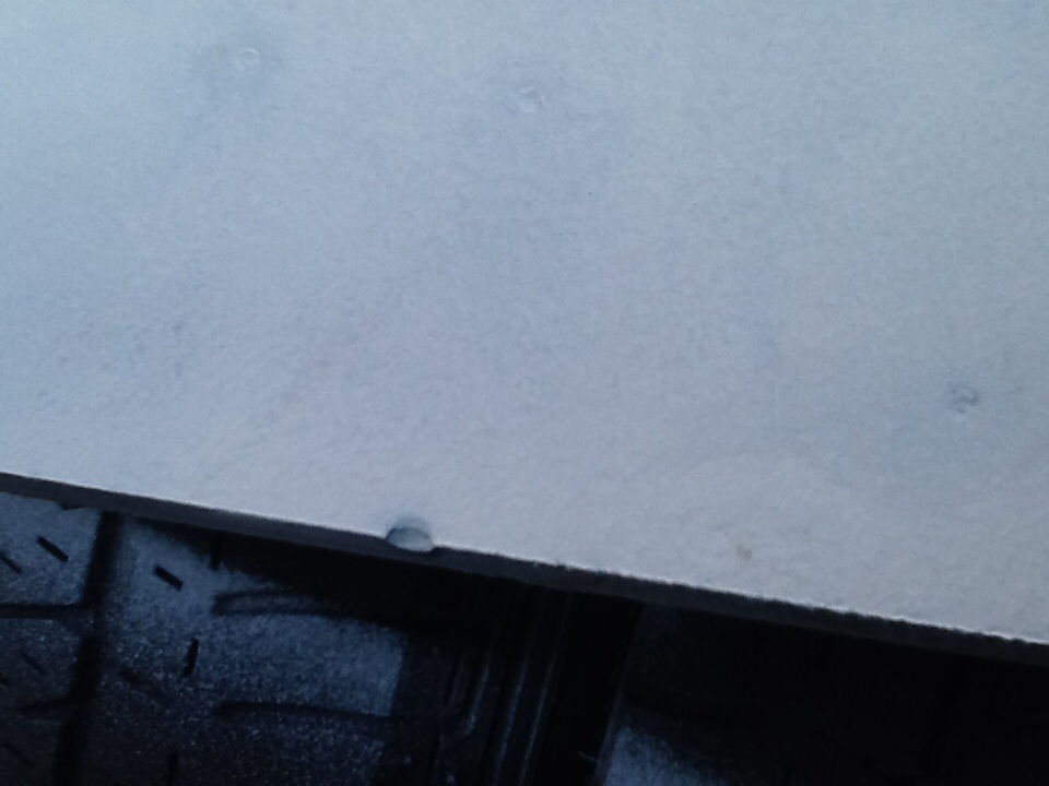 The .223 caused much more visible damage which I was surprised at. No dent to speak of in the steel, but definitely a small crater. The average sized crater is about 0.11 wide when measured with the calipers, no measurable depth to them though. If I feel around on the plate, sometimes I can find the marks, sometimes I can't. I've seen some steel targets that leave a little tiny dot of steel, not making a crater, but coming "out" of the steel when shot at 100yds with .223. Those looked more like a tiny bit weld spatter, not mine though... Mine definitely leaves a small crater.