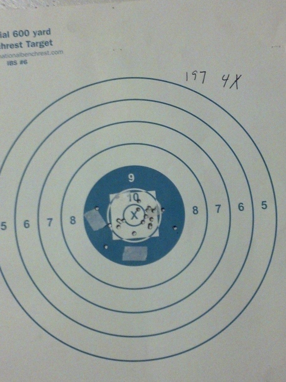 Erud wrote:Shot this last Saturday at Minneapolis Rifle Club in absolute perfect conditions. Distance is 300 meters on the NRA MR-1 target scaled for 300 meters. X-ring is 3.3". Load testing new barrel on Barnard Palma rifle in .308 win. This is the load I will stick with, and just happens to be the exact same load the last barrel liked. Fired from prone position with sling, shooting jacket, and iron sights.