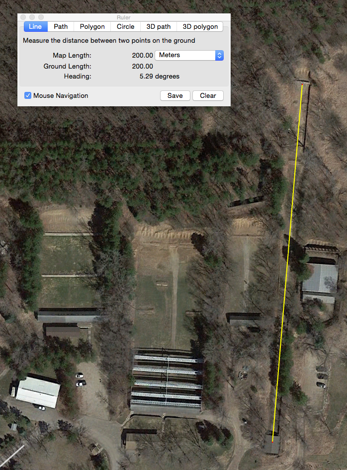 My range is newer than the satellite view on google. I used the GIS measuring tool to determine the distance from the low spot in the draw (North edge) to roughly the South lot line (with provisions for firing line, of course). The county GIS is pretty powerful. You can measure area and have all the overlays like rear lot zone, etc.