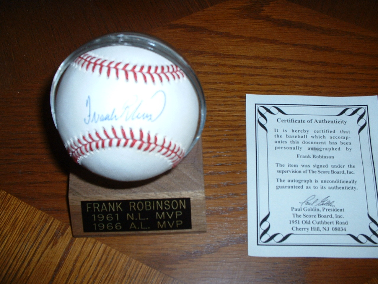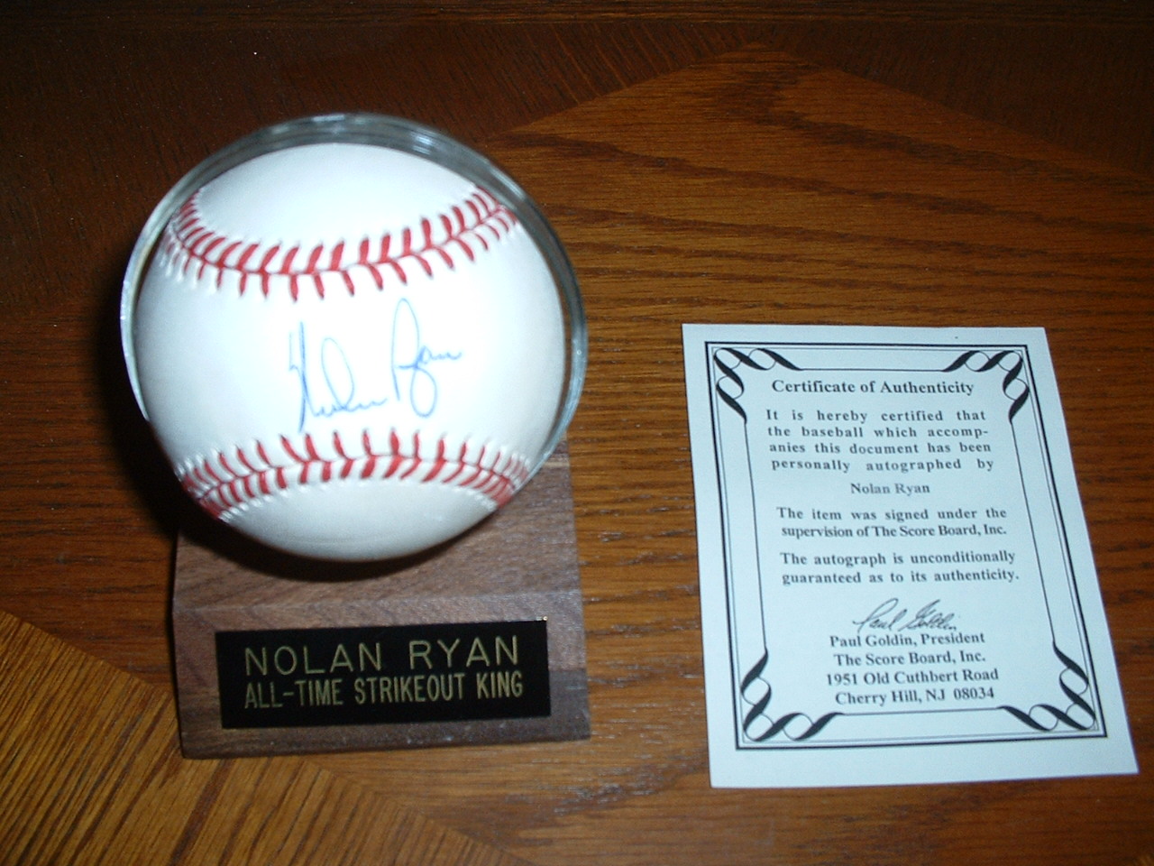 I have For Sale a Nolan Ryan Autographed Baseball and a Frank Robinson Autographed Baseball. These were purchased off of QVC with a Certificate of Authenticity from Scoreboard Inc. I am asking $100 for Ryan and $75 for Robinson. If this is successful I will be posting more.