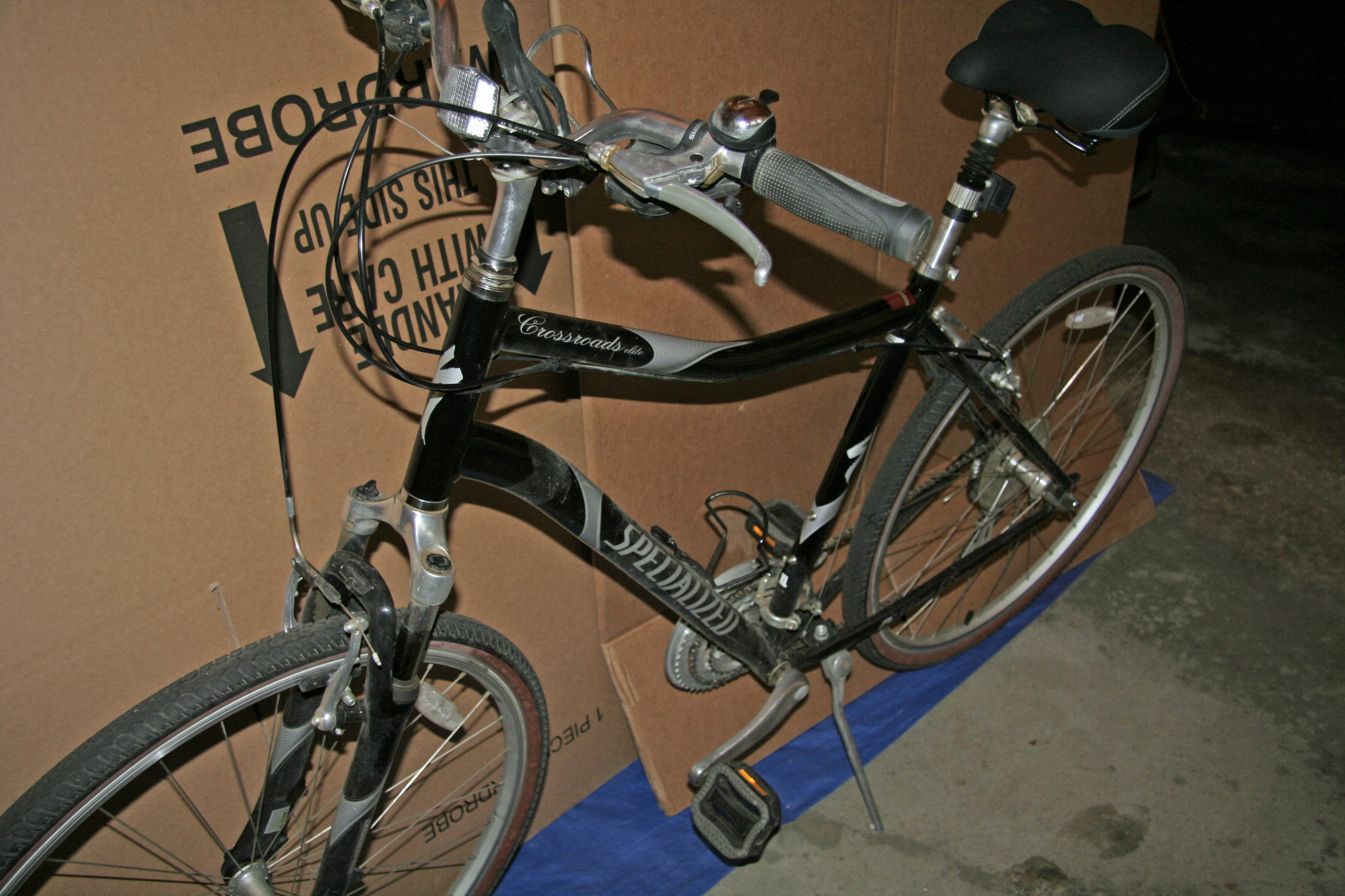 Men's black Specialized Crossroad Elite, 21-inch frame, with puncture-proof combo tires. 24 speed. Purchased for $504 in late 2008 and lightly ridden. $250.