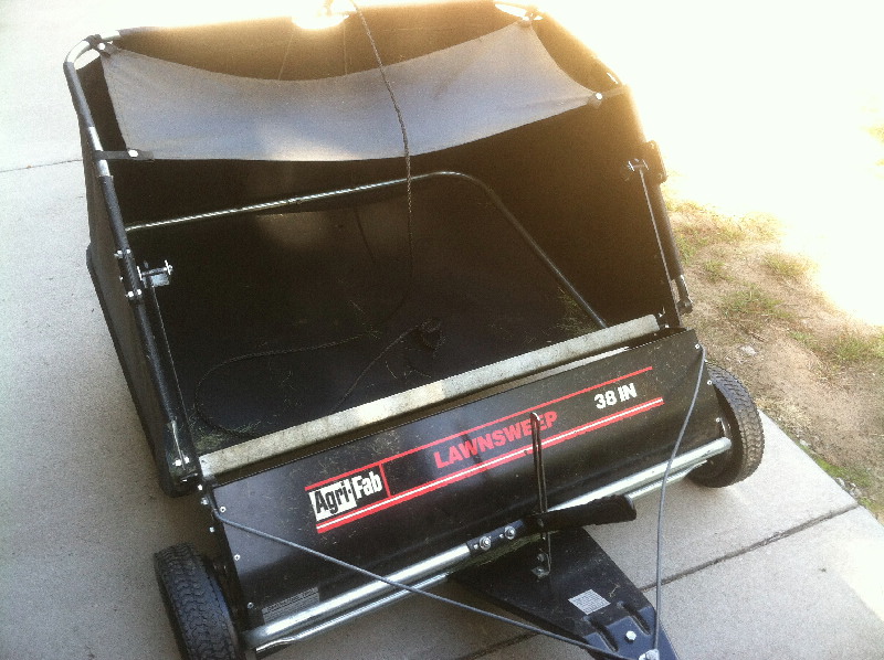 FREE 38 inch Agri-Fab model 45-02211 Lawn Sweeper to the first person that contacts me and arranges pickup. This 38 inch Agri-Fab lawn sweeper has served me well for many years and with a simple repair will serve someone else well for many years to come. Over the summer the brush shaft broke, that's it...It needs a new brush shaft which is available from Sears parts online for $25.68 (see link). It appears to be a very simple repair with all other parts included with sweeper. Due to the fact that I use the sweeper on approx 2+ acres weekly I decided to upgrade to a larger, commercial unit that fits my needs better rather than repair this one. This thing works great on grass clippings, leaves, pine needles and will even pickup some pine cones.