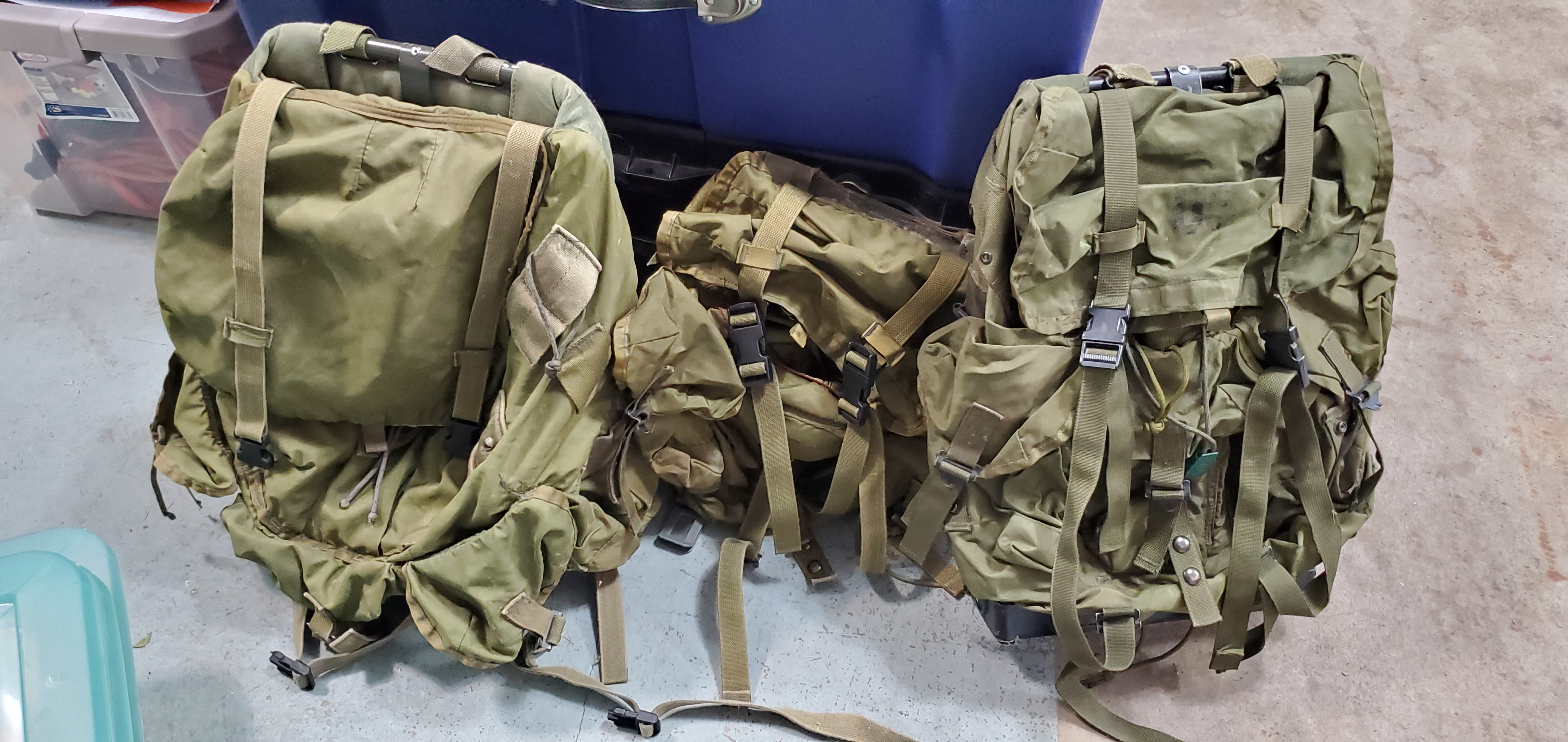 For sale or trade - 3 US Army Alice Packs. 1 large with a frame, 1 medium with a frame, and 1 medium with no frame or straps. All are in pretty good shape, all buckles and whatnot are intact and work. I just don't use them any more and haven't for years.