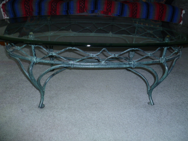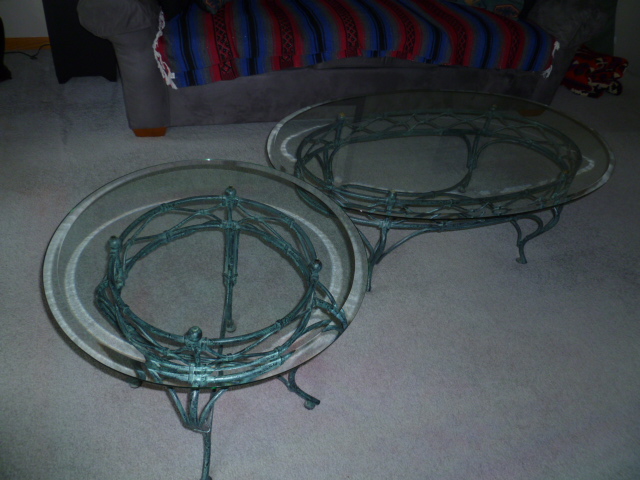 Cut bevel edges. Patina finish on the wrought iron frames, great condition