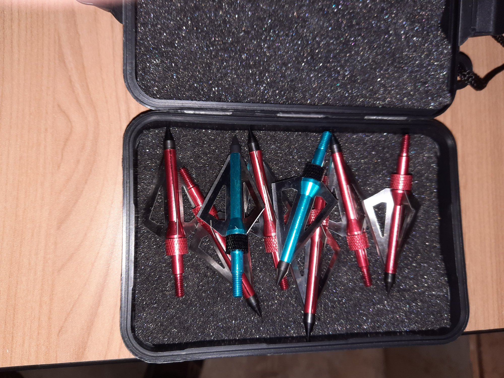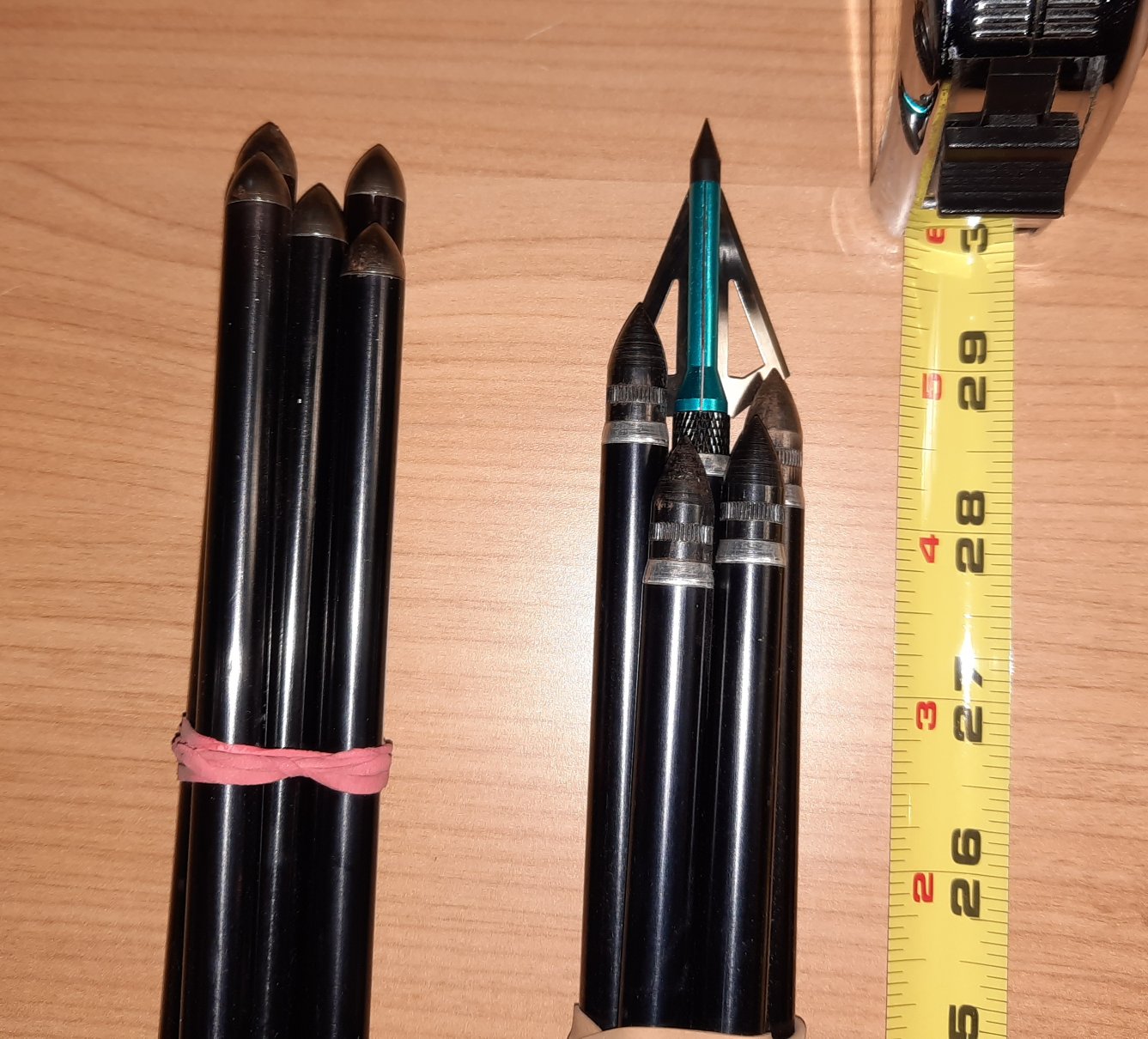 (6) 29 inch 1 oz arrows with permanent practice tips. 5 same arrow with removable practice tips. 9 new broadheads. $65/BO same meets as the other items.