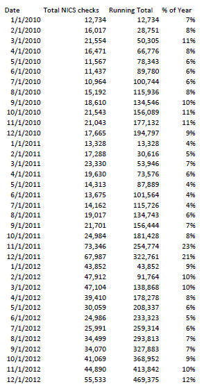Heffay wrote:maxhunter wrote:Background check requests for gun purchases are up 60% in WI. The Wisconsin Department of Justice's background check hotline for handgun purchases has handled 60% more calls year to date as of Dec. 23 than it did for the same period last year, and the total number of calls in 2012 has far surpassed all of 2011. I can't find anything locally about MN but maybe I did not look hard enough. Anybody know?