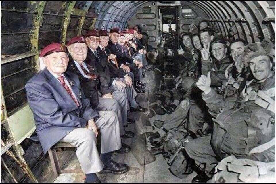 These veteran paratroopers reunited in the Dakota plane they flew in on that day. Bravery personified.