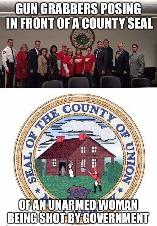 The seal commemorates the killing of Hannah Caldwell during the Revolutionary War.