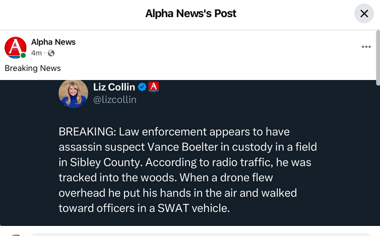 Re: Rep. Melissa Hortman killed, Sen. John Hoffman shot in 'targ