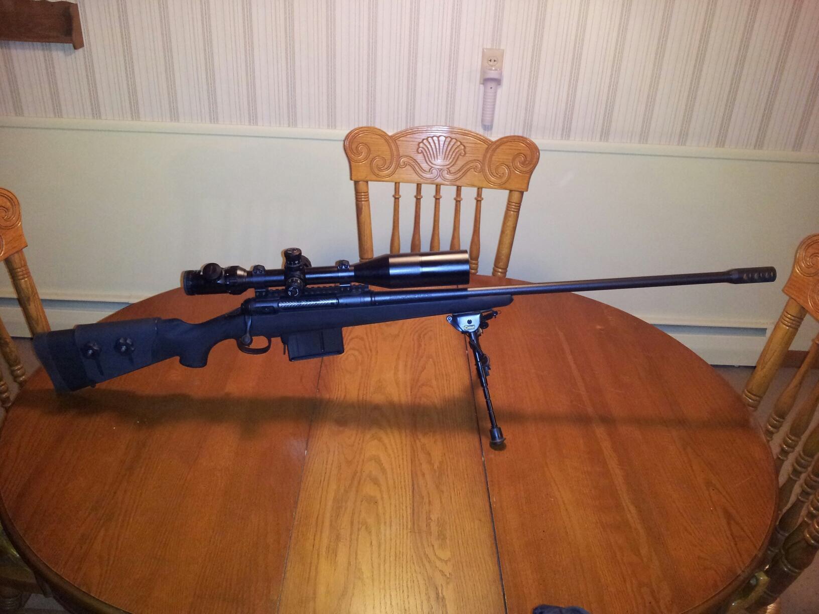 Found a savage 111 chambered in 338 lapua. Has a bipod on and a millett TRS-1 scope with illuminated reticle. Can't remember specs right off hand on scope.