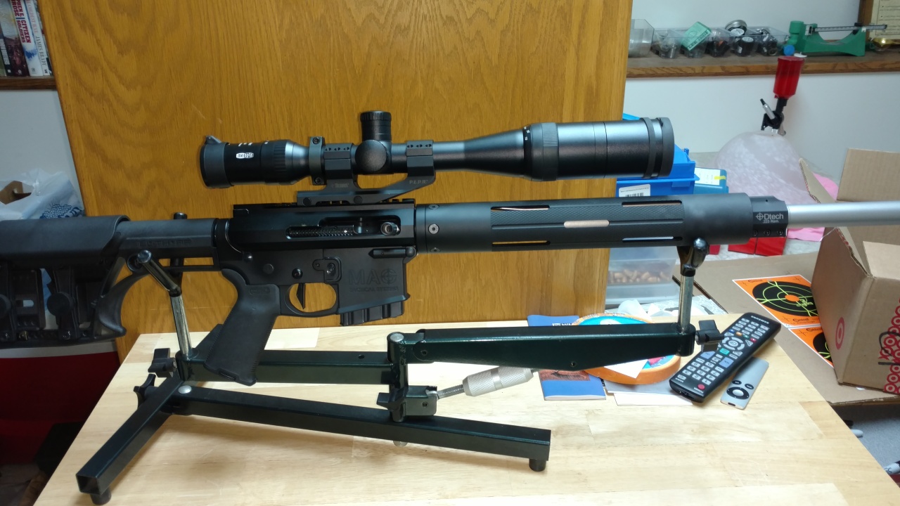 Right now, it has a Magpul PRS stock, Rifle length gas system, Geisslele National Match DMR trigger, Vortex Viper PST 6-24X50 FFP scope, YHM handguard, Atlas bipod.