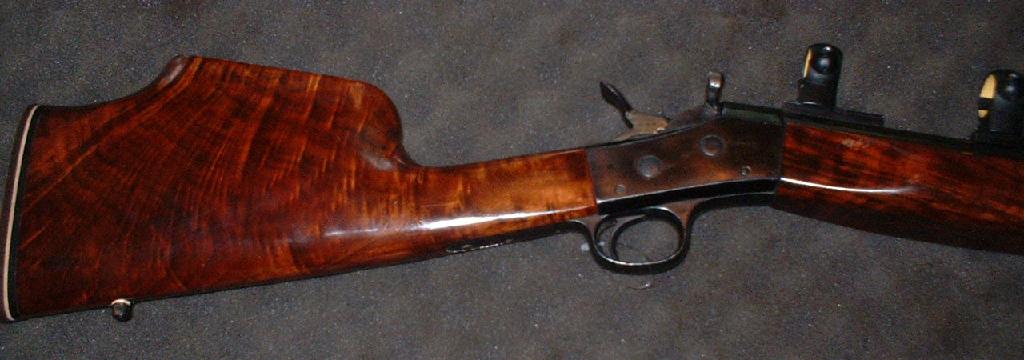 any reason I wouldn't want to add some weight to the butt stock ??? I could core the stock, & add some lead, but with that incredibly figured ( & delicate ) stock I've been thinking of shaping some 5/16" steel bar stock to the shape of the stocks butt, & making a steel butt plate (s) maybe 4-5 stacked as needed to adjust my long length of reach, & finishing them in contrasting colors, with a deep blued plate on the end... a touch of silicone between plates will keep things tight & rattle free, 4-5 plates will likely add about 1 lb to the butt end weight of the rifle, making it balance better... the contrasting colored plates will jazz up the butt of the rifle some... the extra 1 lb of rifle weight won't hurt the bench use of the rifle, & the 32-40 should not be a problem to shoot with a steel butt plate, & especially in a rifle as heavy as the finished weight ends up on this one...