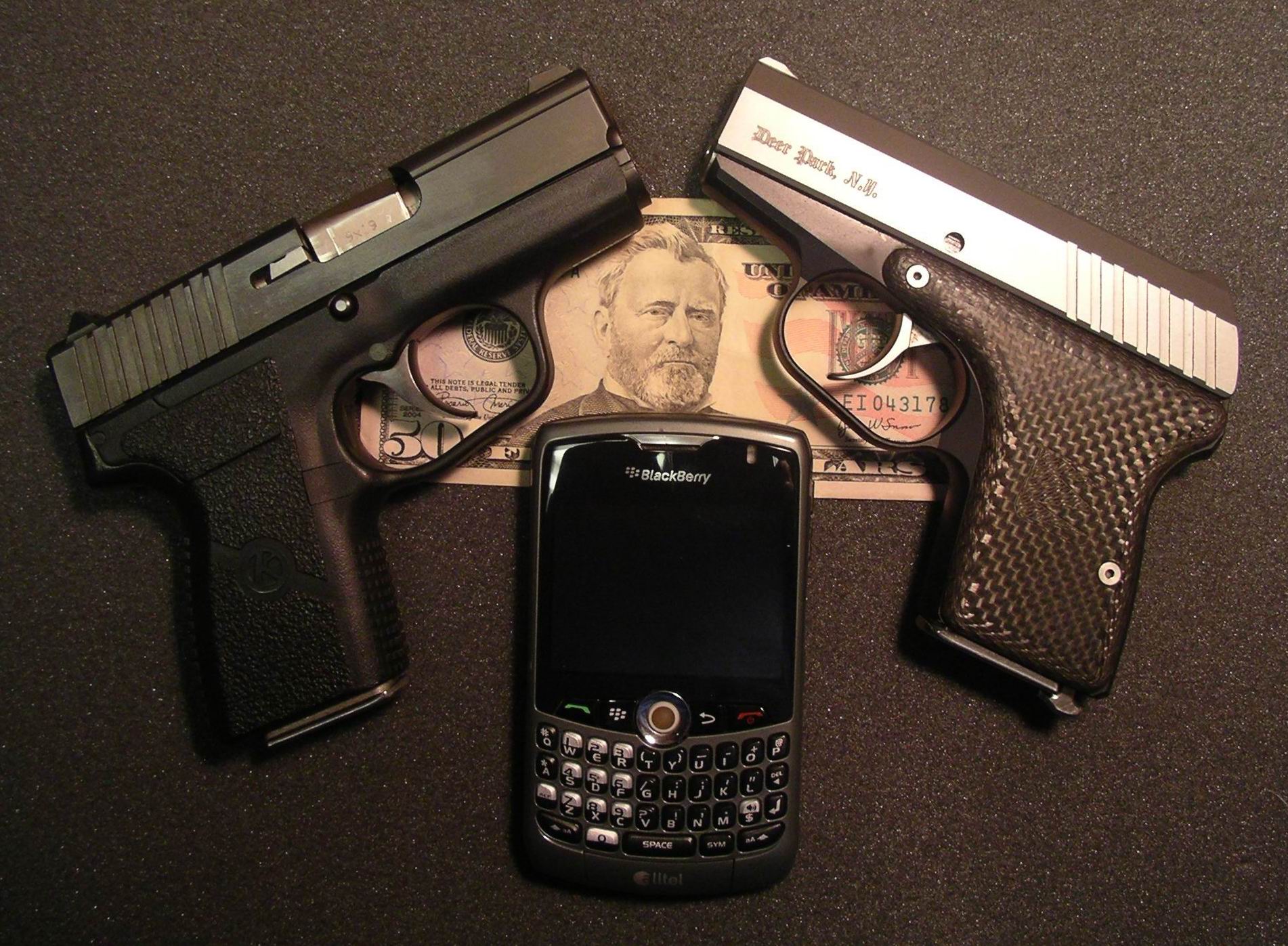 Kahr PM9 on the left and a Rohrbaugh R9s on the right.