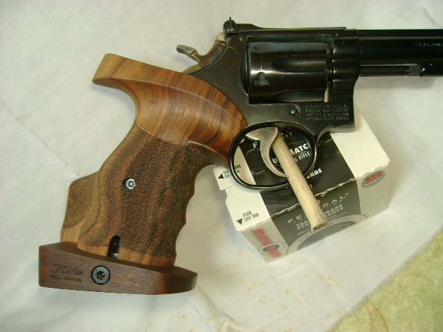 This topic has created a lot of thoughtful responses. One reply did mention S&W M-17. I have 2 "shooters", so these have never seen the floor of a safe. As the 617 has higher capacity, you can compete against the spray guns, no argument. But, back on topic: point of information; the latest models of S&Ws no longer sport a trigger stop. Now true, if you are plinking, you don't need one. But if you want accuracy, you may want to drop back a few years ( "dash-3") and get a blued 6?" M-17. Sure, they don't pop up every day, but they are around. The frame will be cut for the trigger stop, and Numrich Arms has the stop and screw for easy mounting and adjusting. Many of the graybeards on this site know exactly of what I speak. This pic demonstrates the Karl Nill (Deutschland) adjustable target grips with palm support. You put your hand "ON" factory grips..you put your hand "IN" target grips. The quality of the '70's issue M-17 is pretty outstanding. A purist may say go to the K-22 5-screw. Also, like the others say, the Wilson reduced weight spring set drops into these and yields a lighter, more desirable trigger pull/action. Finally, a little too much money on a nice pistol now spares you having to trade up, repair or create an excuse, let alone the joy of ownership and intrinsic value.