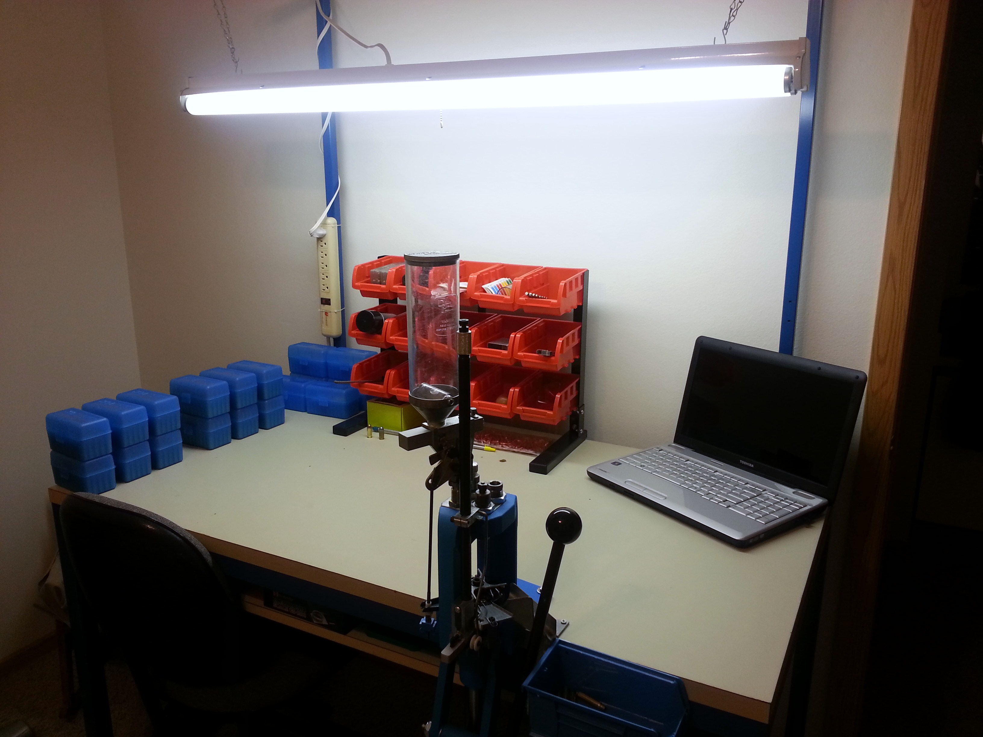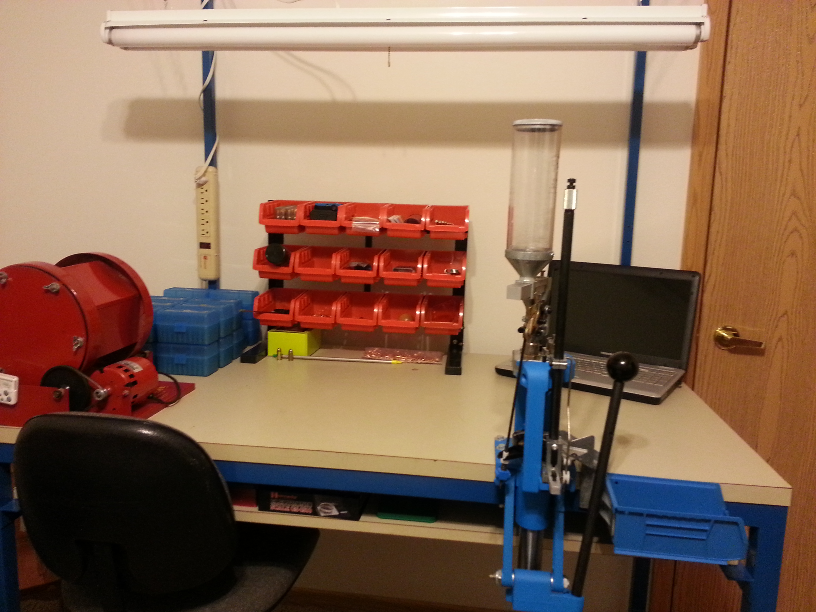 I’m still new to the reloading scene but find it’s a very fun relaxing hobby, and a great excuse to go to my little man cave. I made some quick release mounts for the powder drop and press, since as I said earlier, this isn’t just my gun room and sometimes I need the space on the bench for other projects. I’d like to get a progressive setup someday, but for now this is all I really need.