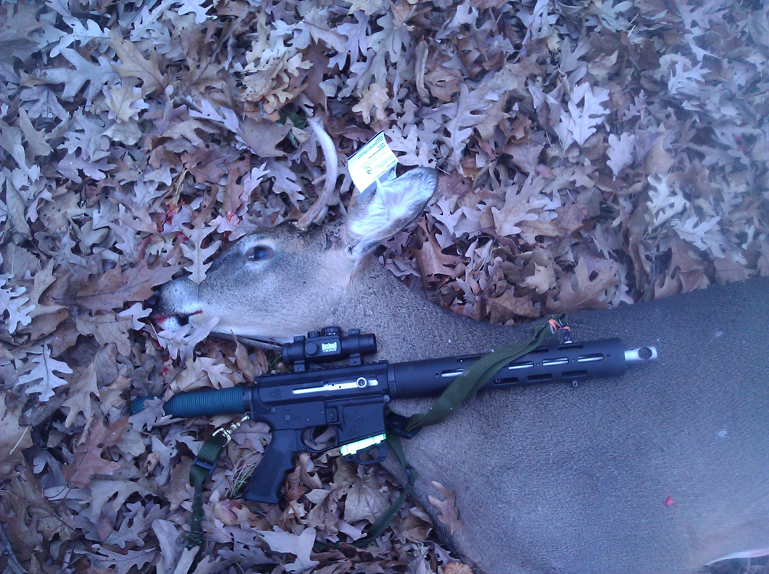 Vlad wrote:It is a 300 / 221 or 300 blackout /fireball/ whisper. 12.5 in barrel made by J Fettig on the board. Throws a 125 balistic tip at 2475FPS. We are in an intensive harvest are and have 10 folks hunting and 18 down so far but no big racked deer. Lots of fawns, does and spikes.