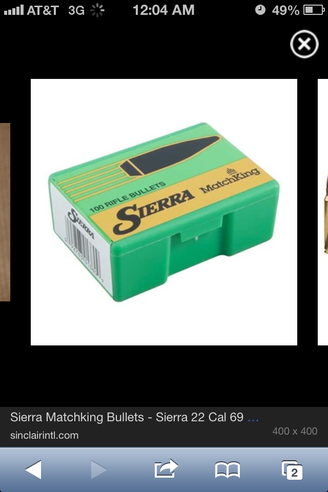 I have 100 rounds of Sierra match king 69 boat tail-$28 (opened but not used)