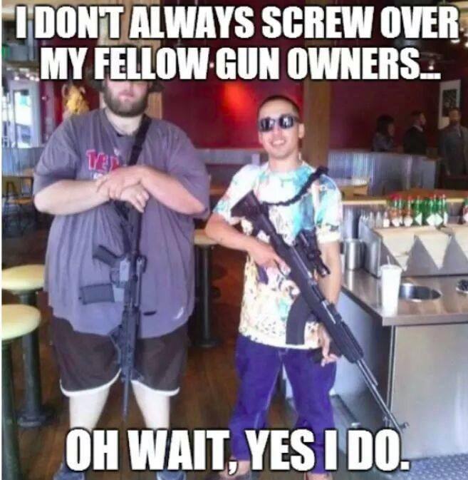 These two asses being the face of the open carry movement is akin to Mitch McConnell being the face of the future republican party. Nice going dimwits. While we fight the most gun hating administration in American history, it's good to know you two morons have our backs. Bloomberg and Moms Demand Action applaud you both!