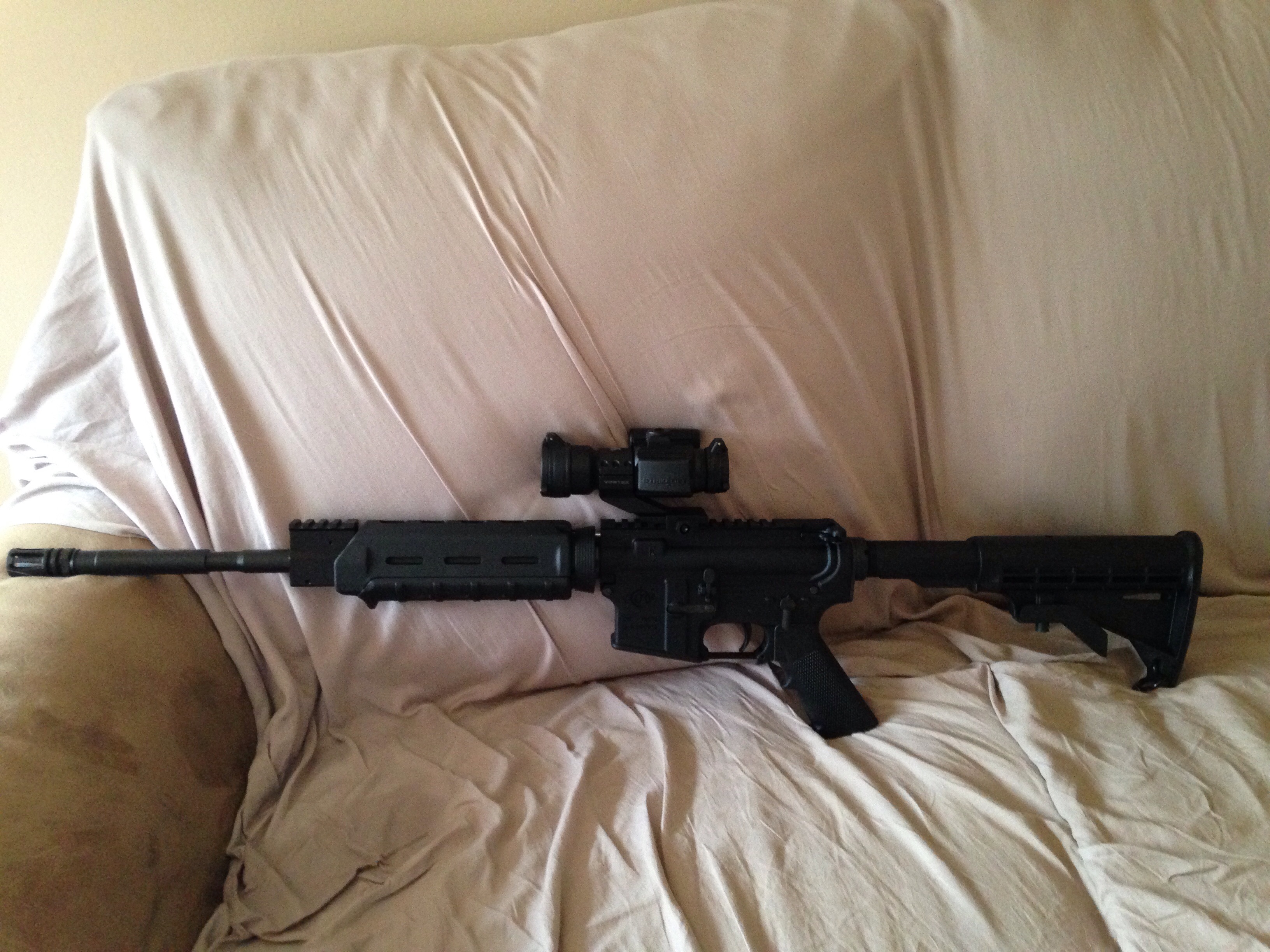 My first AR, put it together myself. Nothing too special, tried to "Keep it Simple, Stupid" Looking for a 10" MI M-Lok handgaurd and cerakote, soon.