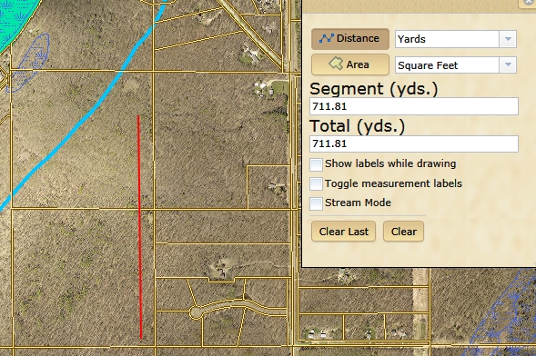 FJ540 wrote:700yds. I haven't tried measuring it outside of the county GIS, but it should be do-able.