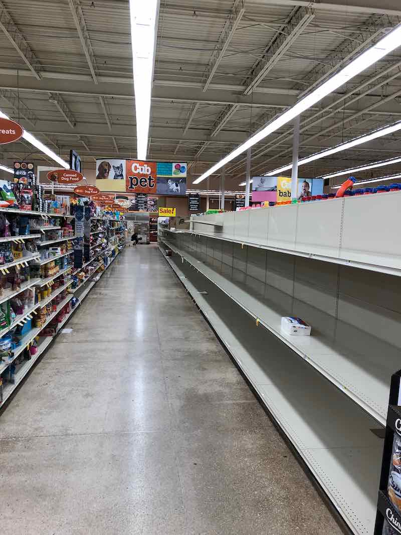 I just got home from Cub. The bread and paper product isles were wiped out. There was slim pickings in the can goods isle, but you could still find what you needed.